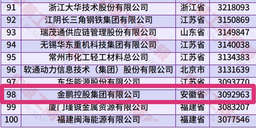 8月28日,全国工商联发布2025年中国民营企业排行榜单。安徽天大企业(集团)有限公司、金鹏控股集团有限公司、安徽天康(集团)股份有限公司荣登榜单。