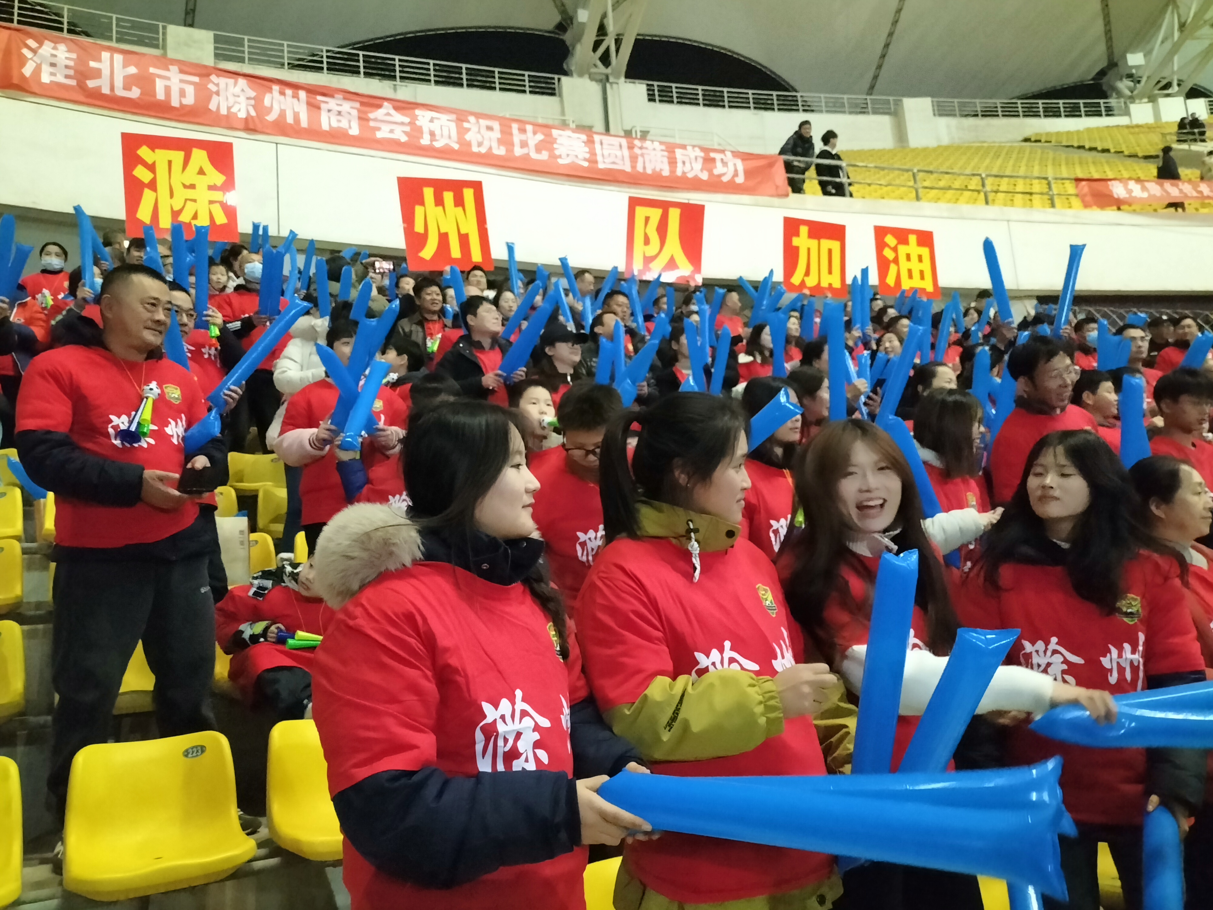 比赛现场,助威团在“淮北市滁州商会预祝比赛圆满成功”的醒目横幅下,高举“滁州队加油”的助威牌,全员身着统一印有“滁州”字样的红色文化衫,好似一片炽热的红色海洋,在看台上形成了一道亮丽的风景线,格外引人注目。他们用乡音呐喊助威,用哨声加油鼓劲,将客场变成了家乡球队的“主场”,极大地鼓舞了滁州队队员的士气。