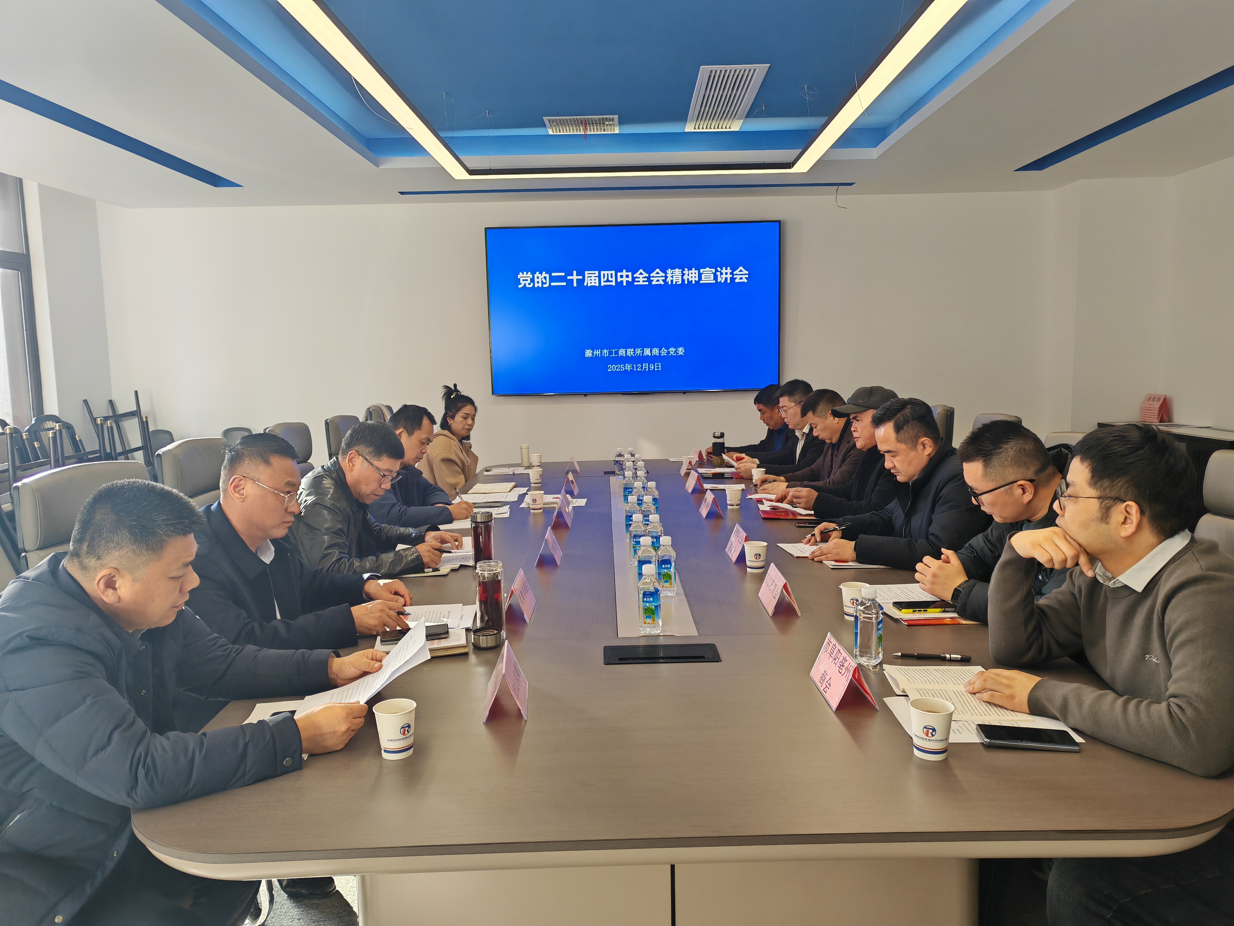 12月9日, 市工商联所属商会党委(扩大)会议在滁州市阜阳亳州商会召开,市工商联党组成员、副主席、所属商会党委书记胡大林主持会议并做党的二十届四中全会精神宣讲,市工商联所属商会党委委员、不是党委委员的直属商协会党支部书记及未成立党组织的直属商协会党员负责同志参加会议。